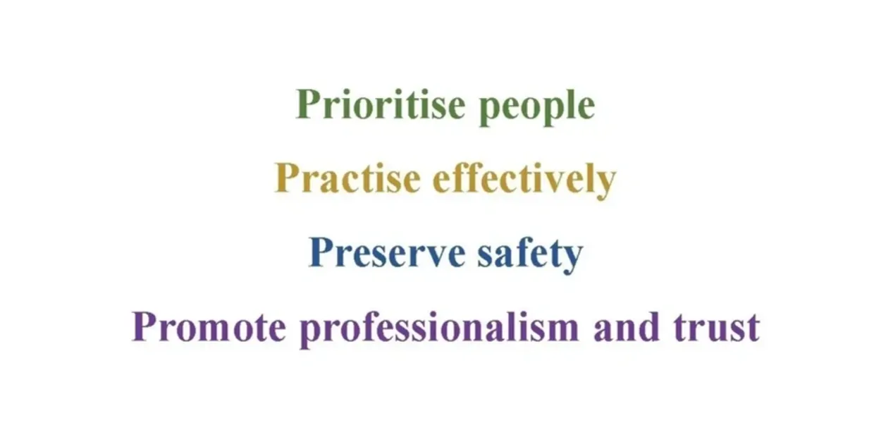 It  is structured around four themes – prioritise people, practise  effectively, preserve safety and promote professionalism and trust.